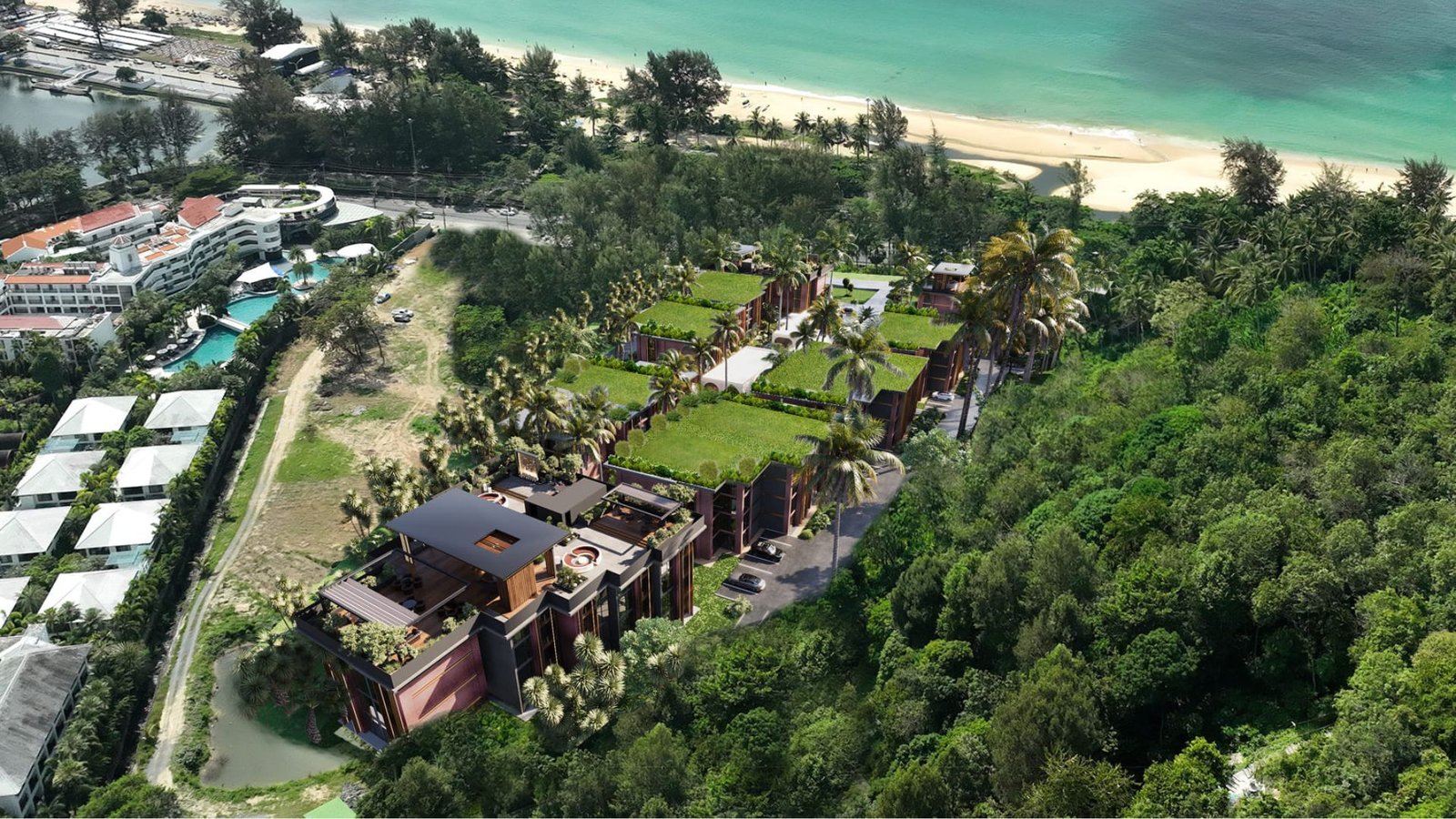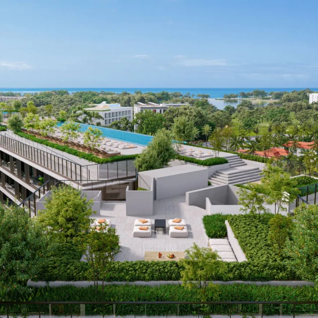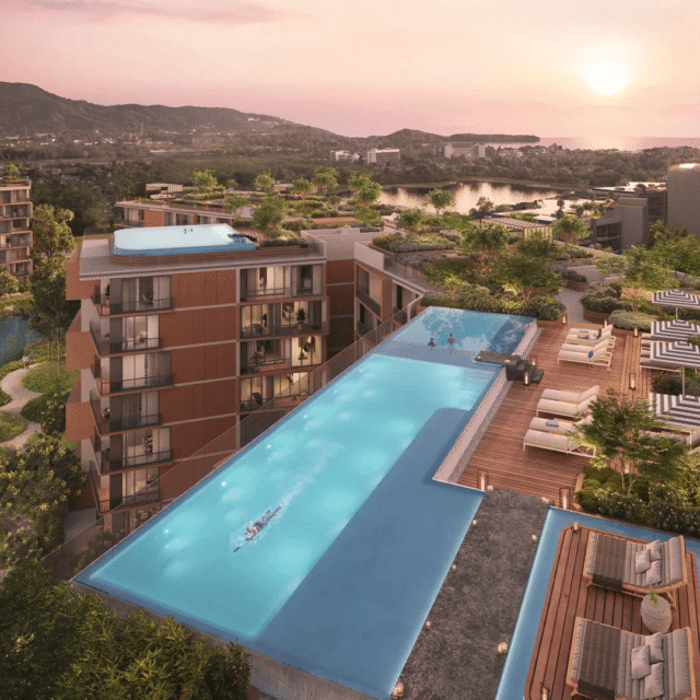 ◾️ Формат 150 метров до Karon Beach, арт-деко архитектура, насыщенная внутренняя инфраструктура (бассейны, бары, спа, библиотека, co-working) и отдельный кластер вилл создают сильный lifestyle-компонент.