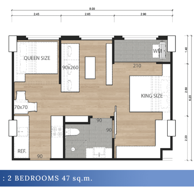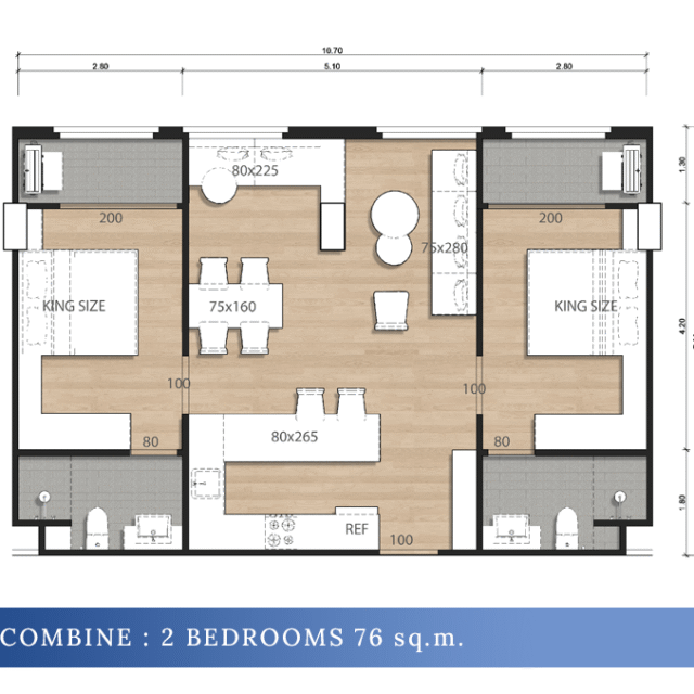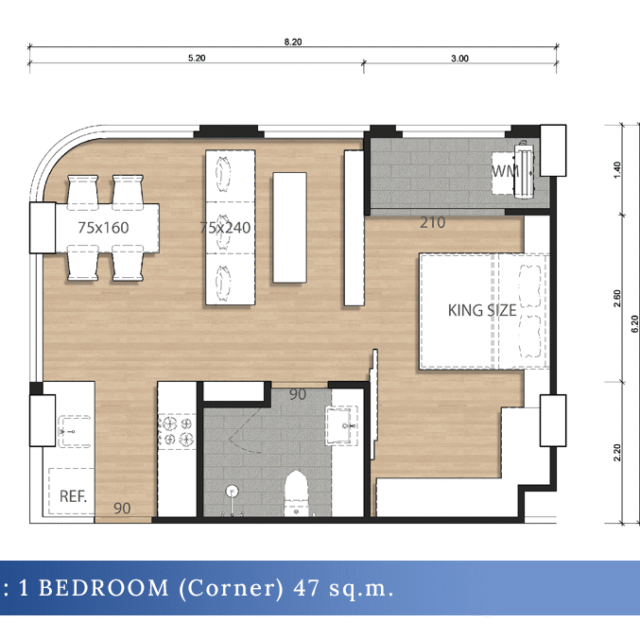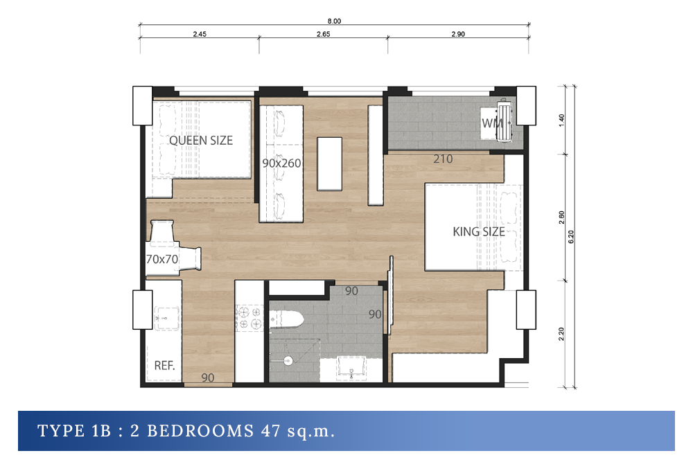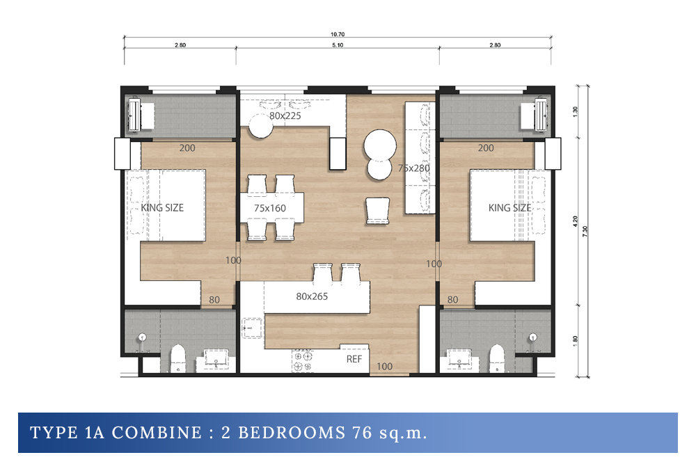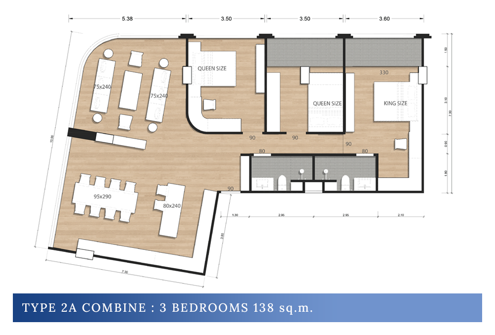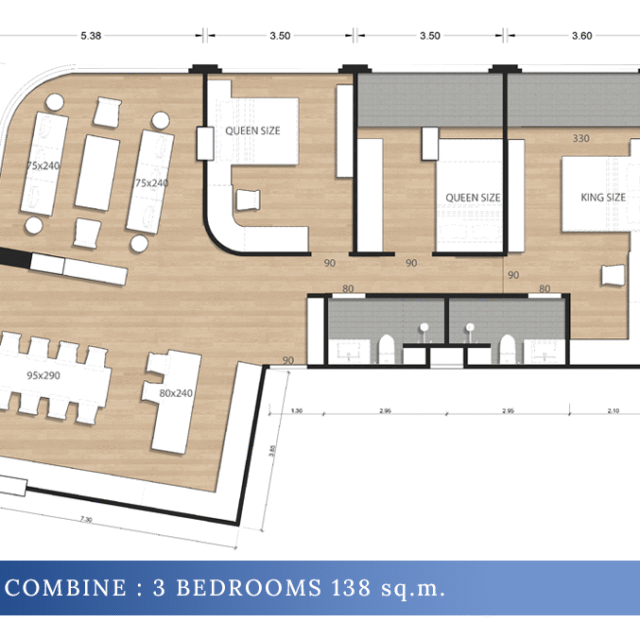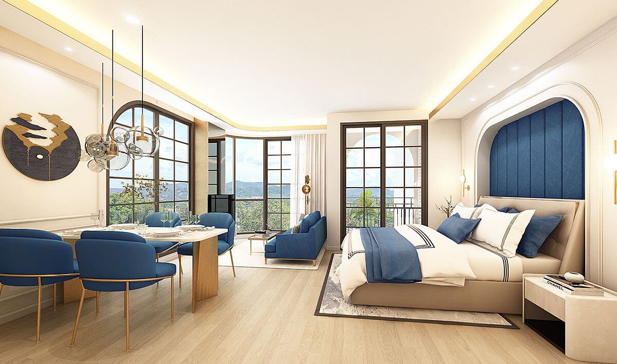 В проекте представлены апартаменты от одной до трёх спален площадью от 38 до 138 м². Каждая планировка создана с упором на максимальную эффективность пространства — продуманные зоны, чистые линии, панорамные окна и органичное распределение света создают непрерывное ощущение комфорта. Жилое пространство легко адаптируется под образ жизни владельца, становясь «расширяемым домом», который растёт вместе с его потребностями.