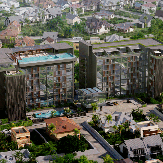 Комплекс построен из высококачественных материалов, включая как импортные, так и местные компоненты: высокопрочный бетон, натуральные каменные и деревянные акценты, встроенная мебель из благородных пород дерева. Благодаря этому проект сочетает долговечность конструкций, премиальное ощущение интерьера и природную теплоту материалов.