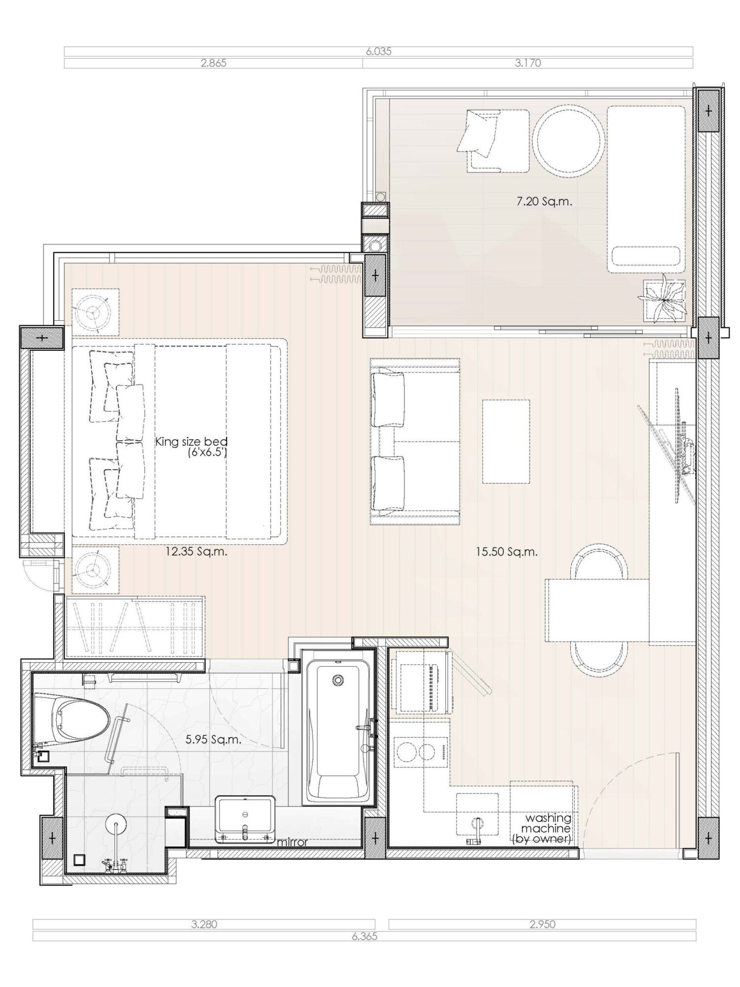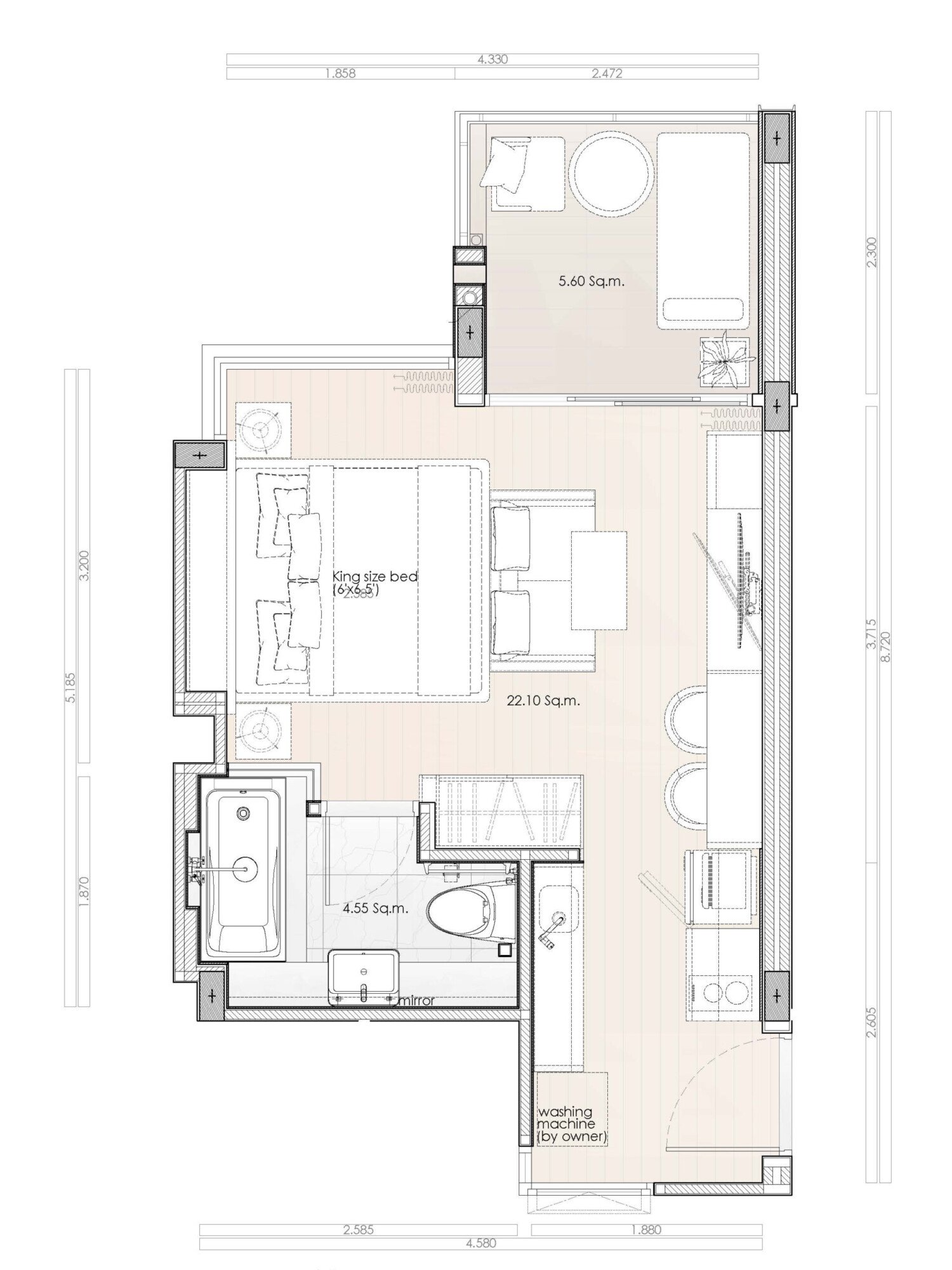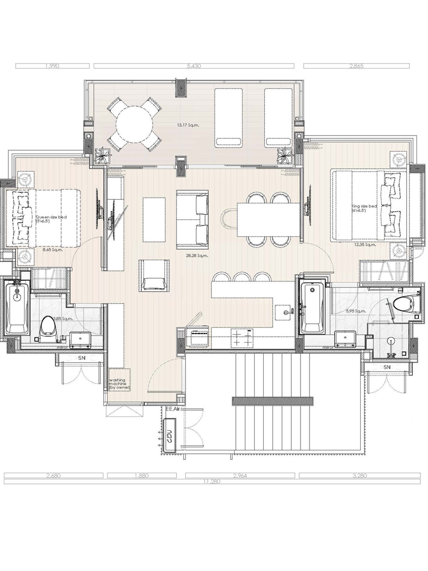 - Локация в районе Nai Yang — пляж национального парка Sirinat, более спокойная атмосфера и меньше плотность застройки, чем в центральных курортах