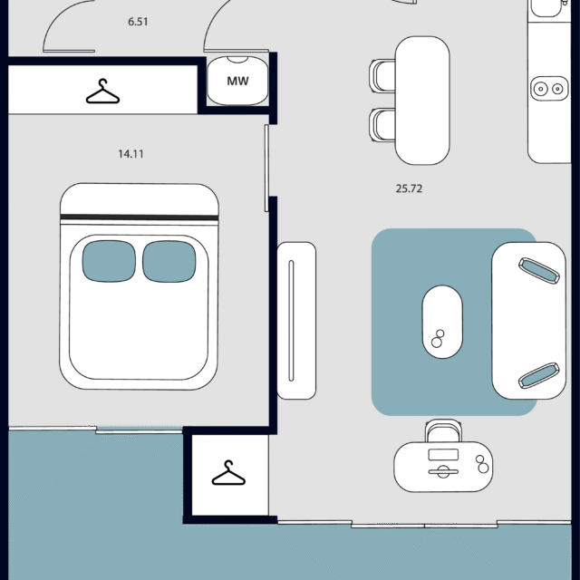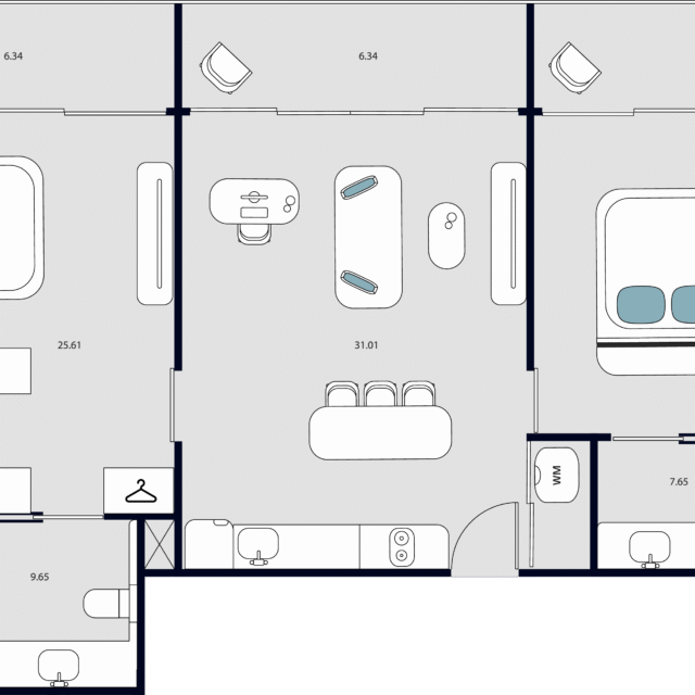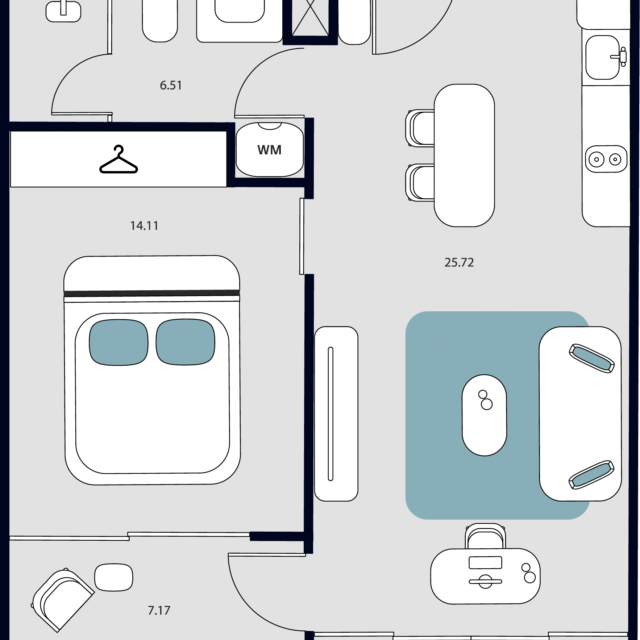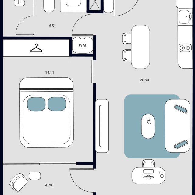 Проект предлагает разнообразие планировок — от компактных студий и функциональных 1–2-комнатных квартир до стильных дуплексов с увеличенным пространством для жизни.