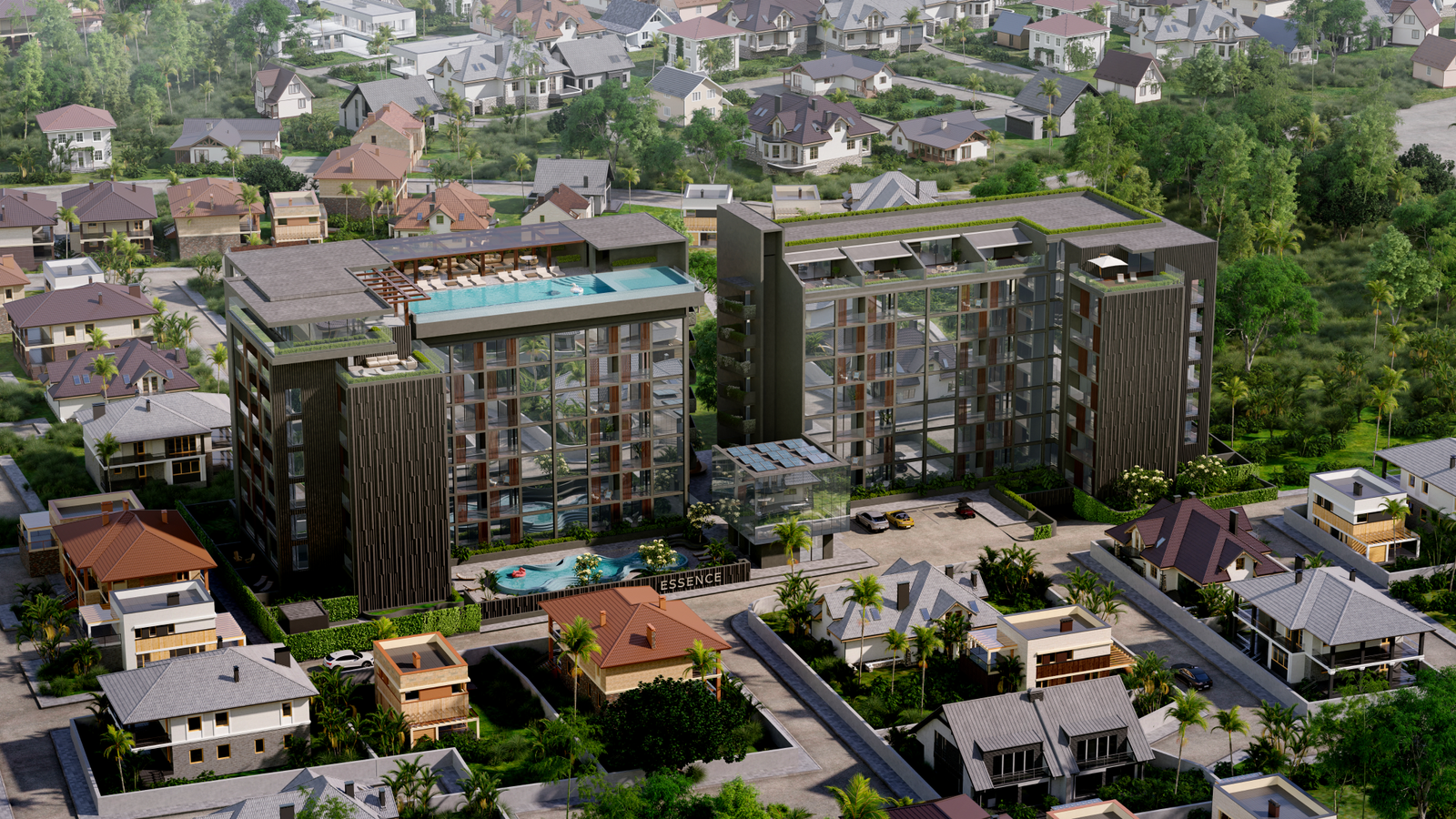 Essence Residence сочетает атмосферу тропического курорта и продуманную инфраструктуру для жизни круглый год. Благодаря локации рядом с пляжами, кафе, международными школами и спортивными центрами, проект подходит как для постоянного проживания, так и для инвестиций с высоким потенциалом аренды.
