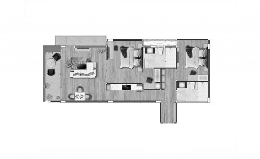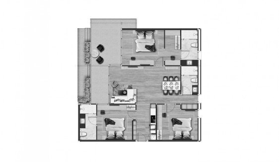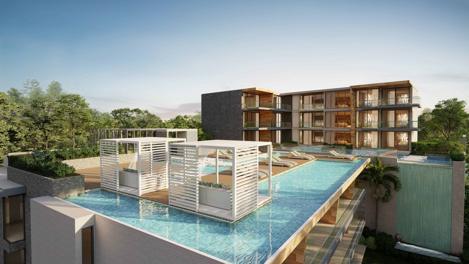 Апартаменты с 1–3 спальнями выполнены в современном стиле, с панорамным остеклением, балконами, полноценными кухнями и акцентом на комфорт для курортного проживания и аренды. Концепция — «бутик-курорт» с небольшим количеством владельцев, общим infinity-бассейном, rooftop-зонами и приватной атмосферой при близости к инфраструктуре Patong.
