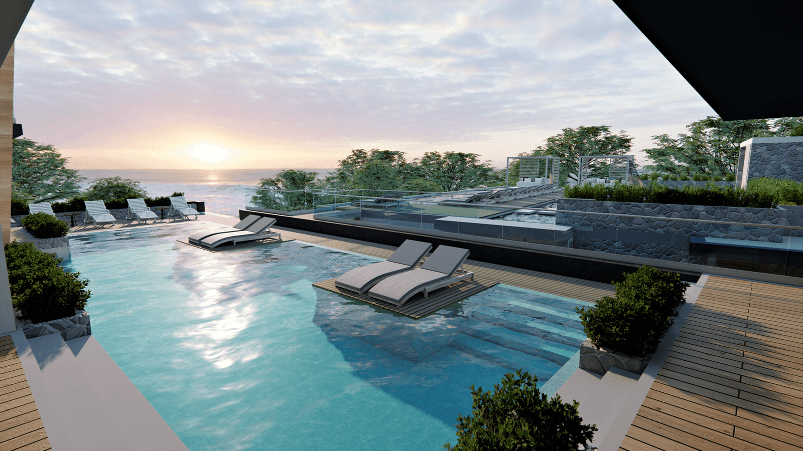 - Зоны отдыха у бассейна
