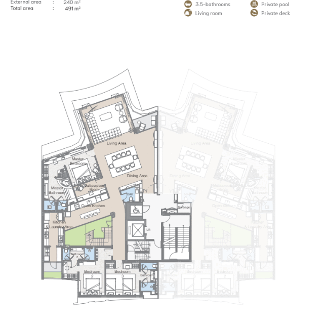 Архитектура комплекса сочетает современный дизайн и гармонию с природой, обеспечивая ощущение уединённости и комфорта. Интерьеры апартаментов продуманы до мелочей: просторные комнаты, высокие потолки, большие окна и террасы создают эффект продолжения жилого пространства на открытое море.