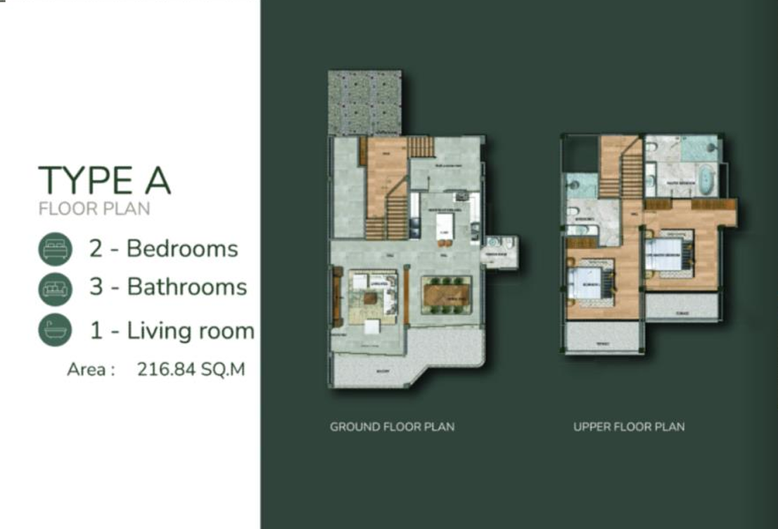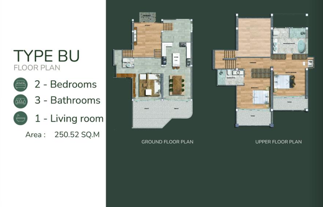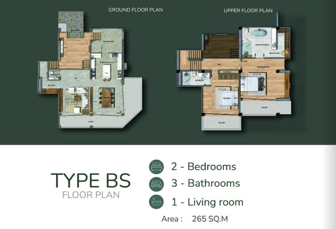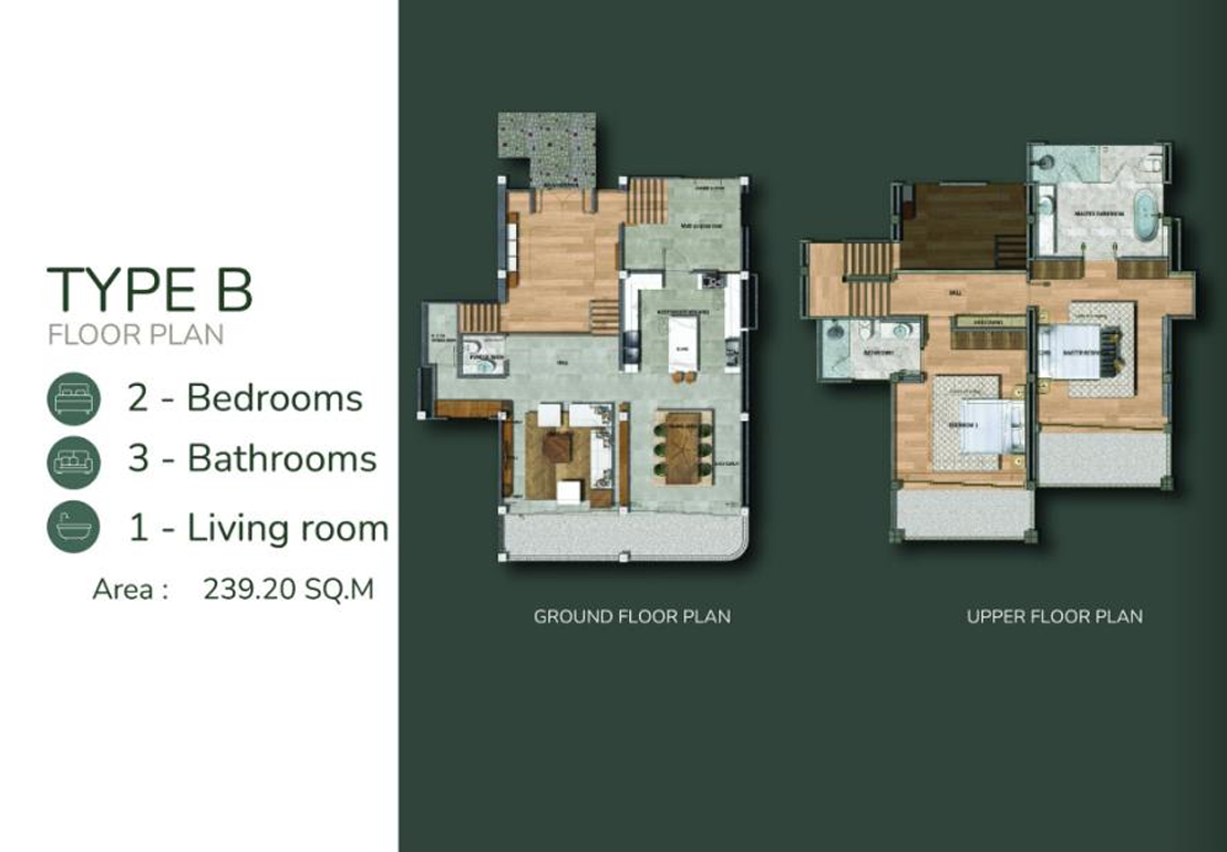 Всего около 40 резиденций с 2–3 спальнями и 2–3 ванными, площадью от примерно 216 до 335 м², каждая с просторной дневной зоной, большими террасами и видами на гольф-поля, лес и Phang Nga Bay.