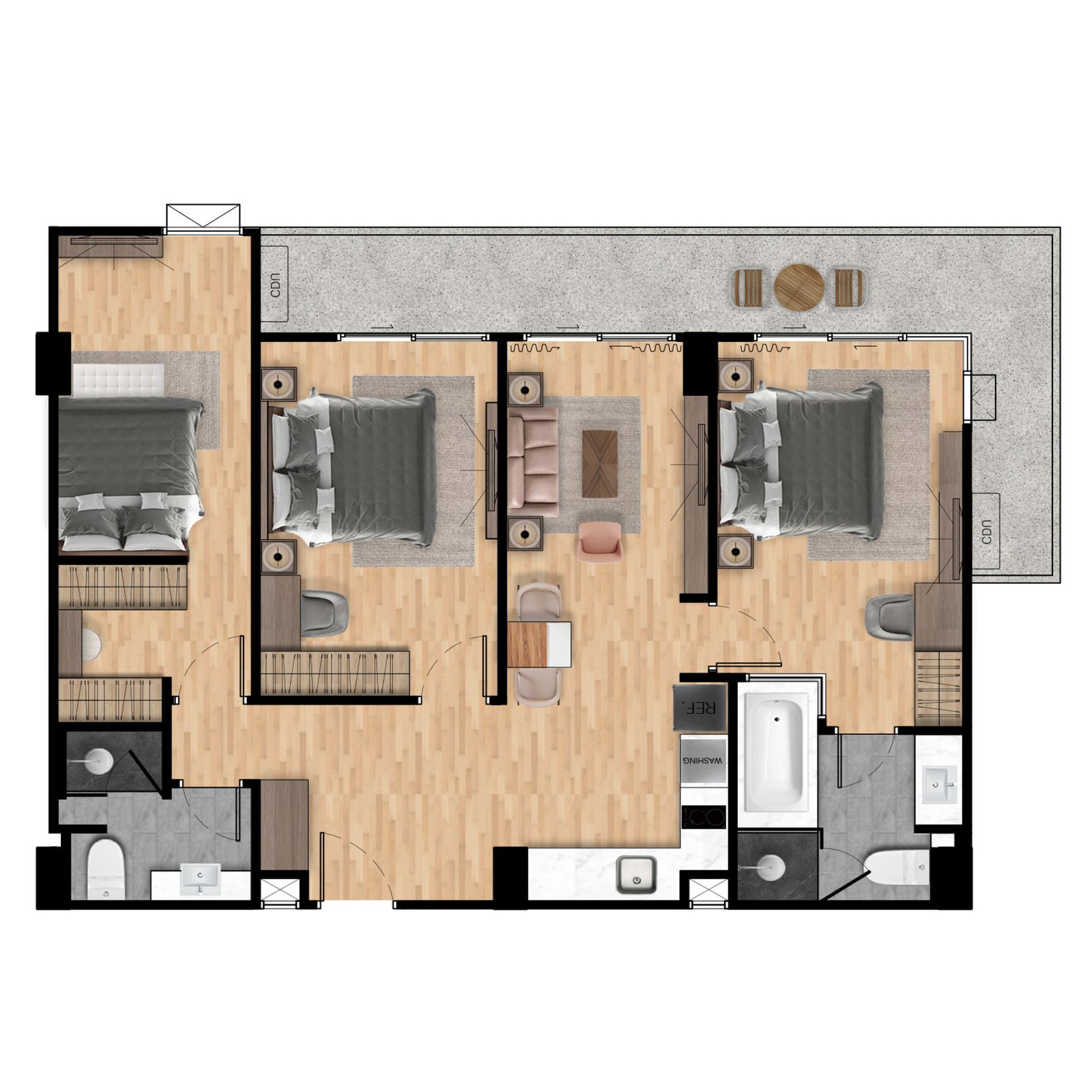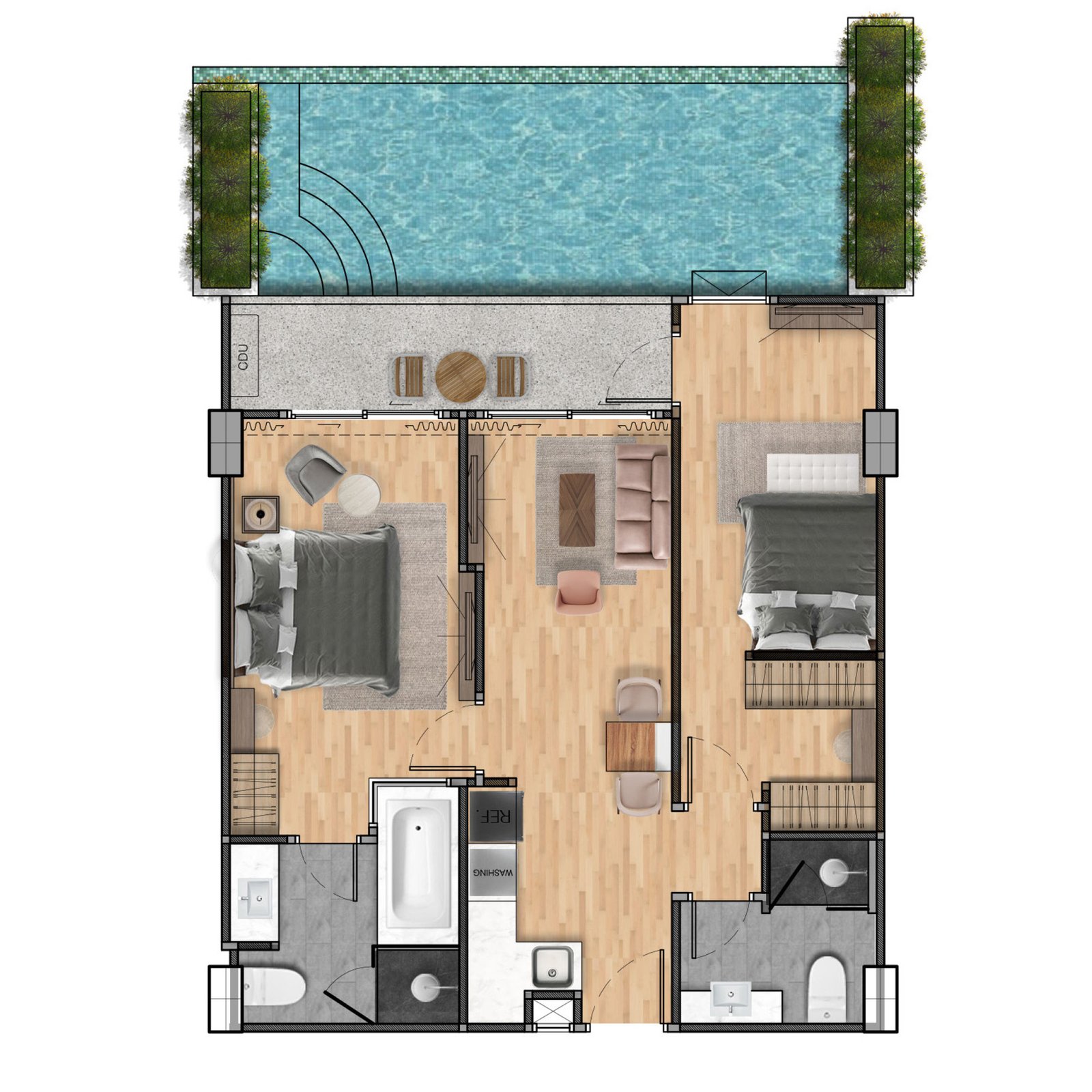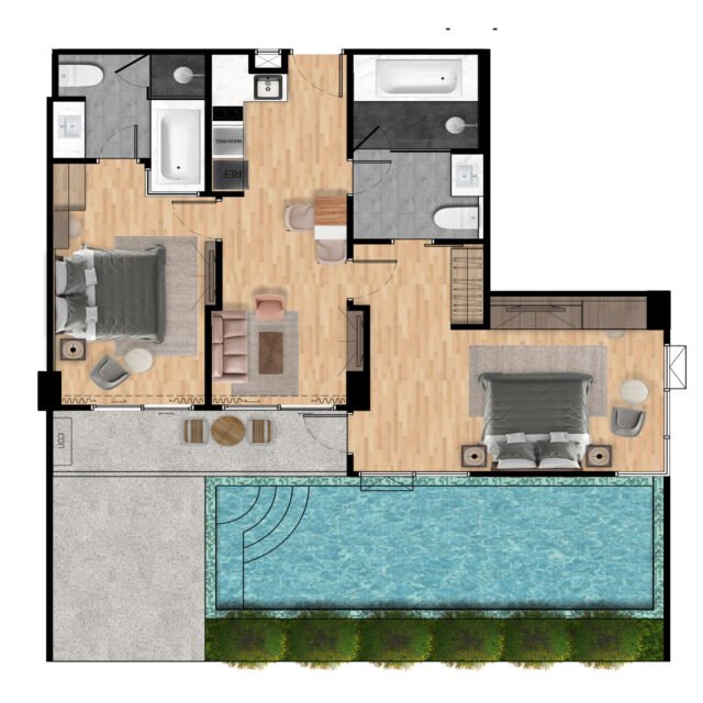 Концепция «all-in-one lifestyle» позволяет жить, отдыхать и работать внутри одного проекта: резиденты получают доступ к школе, детскому парку, wellness-клинике, ресторанам и спортивному комплексу, не выходя за пределы комплекса. Это создаёт удобный сценарий как для семей, так и для инвесторов, ориентированных на стабильный поток арендаторов и долгосрочное владение.