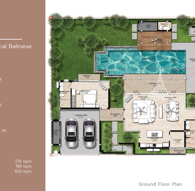 - Приватный бассейн в каждой вилле (Tropical Balinese layout)