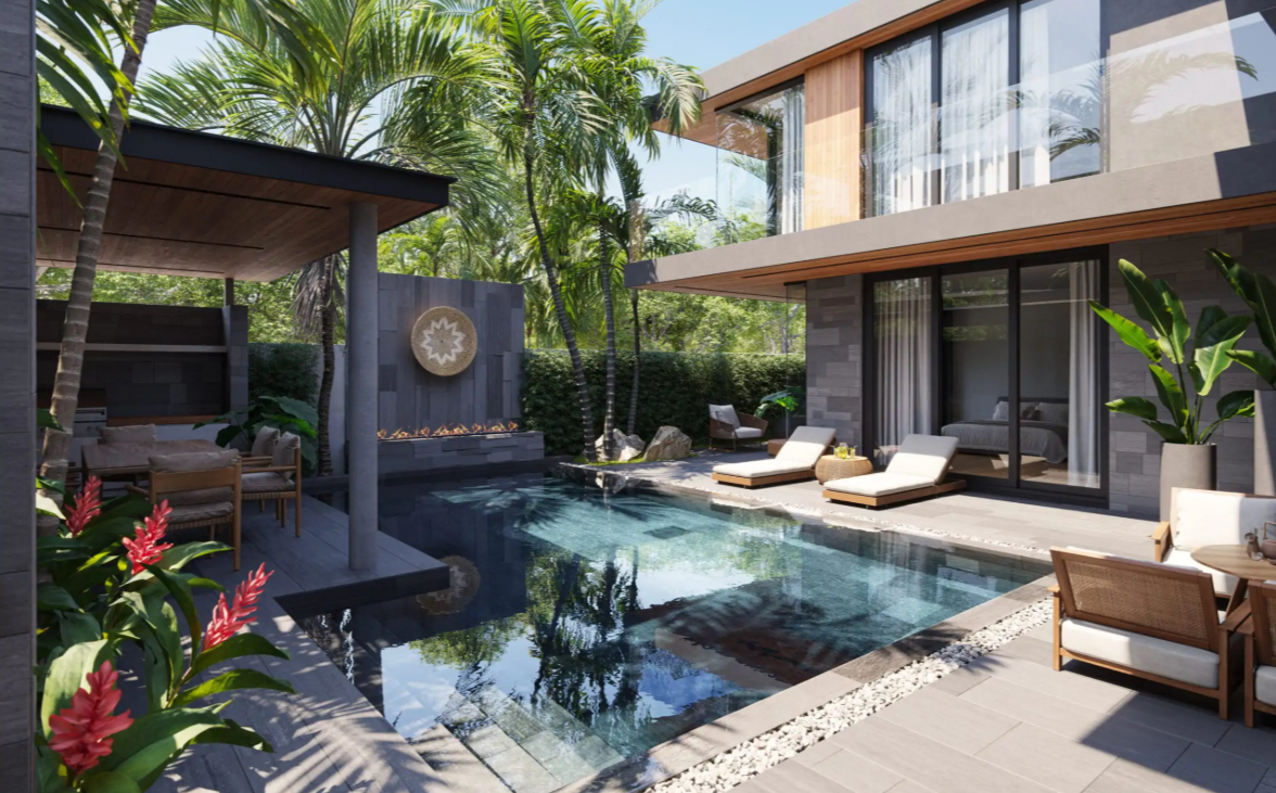Проект объединяет современные 3–4-спальные pool-villas с приватными бассейнами, панорамным остеклением и высокими потолками, окружённые горами и тропическим лесом.