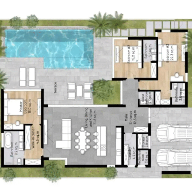 Проект для тех, кто хочет жить у озера в Bang Tao, с хорошей клубной инфраструктурой и возможностью одновременно держать объект как статусный актив. Концепция «малого сообщества» из 27 вилл с коворкингом, рестораном, спортзалом и прогулочными зонами вокруг воды делает комплекс комфортным для круглогодичного проживания и long-stay форматов.