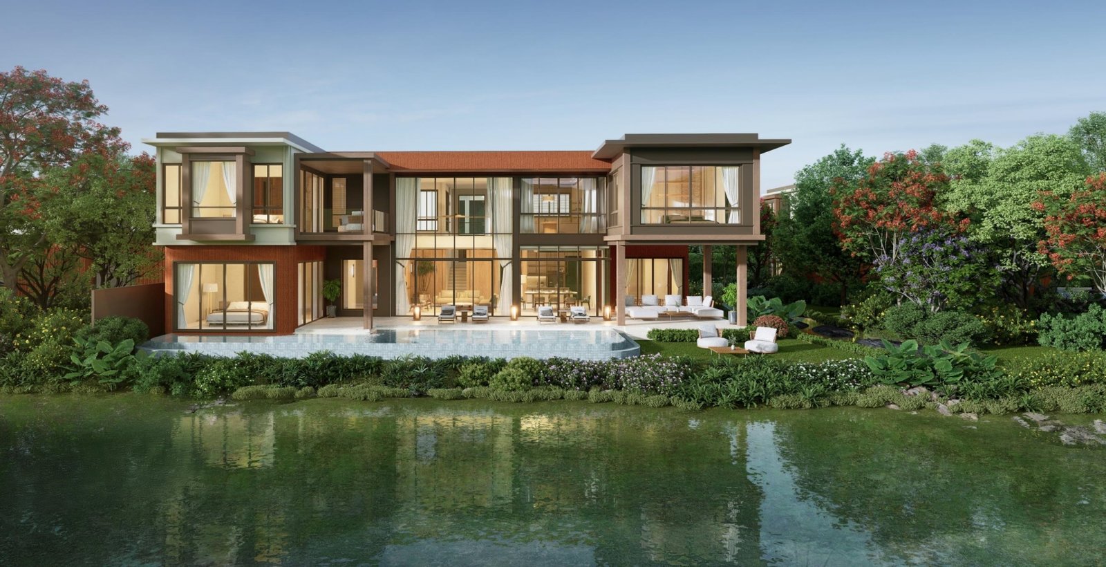 • Первая линия к озеру и каналу: каждый дом спроектирован с учётом конкретного lagoon-плота.