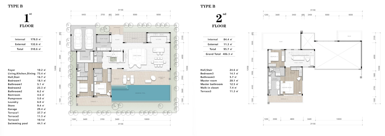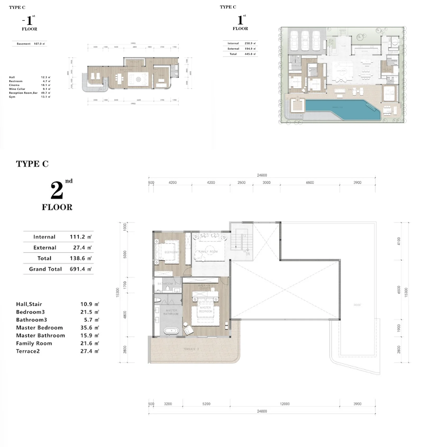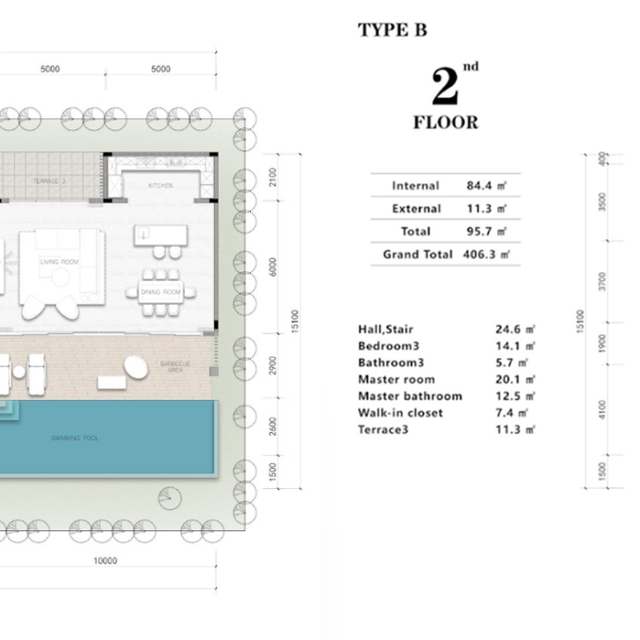 В каждой вилле предусмотрены просторные планировки с 3–6 спальнями, частными бассейнами, террасами и садами. Панорамные окна «от пола до потолка» наполняют дома естественным светом и открывают захватывающие виды на холмы, озера и тропическую растительность. Дизайн выполнен в современном минималистическом стиле, с акцентом на функциональность и уют.